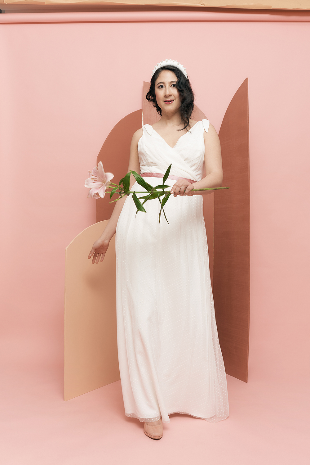 SAMPLE SALE: Brautkleid Dottie aus Pünktchentüll mit gewickeltem Ausschnitt Gr.38/40