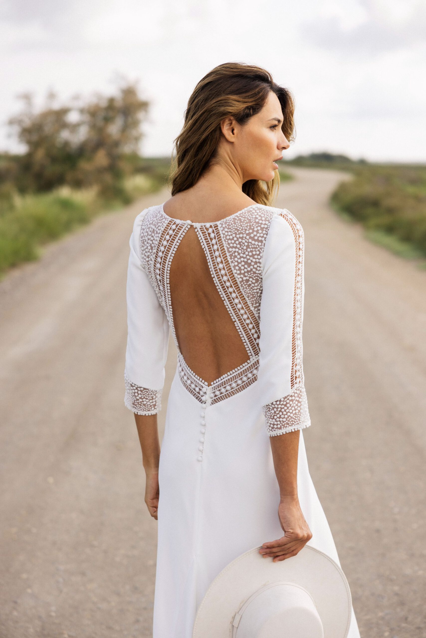 Ob fürs Standesamt oder eine prunkvolle Hochzeit, diese Kleid begleitet dich an deinem schönsten Tag und lässt dich durch seine Leichtigkeit und Natürlichkeit strahlen.
