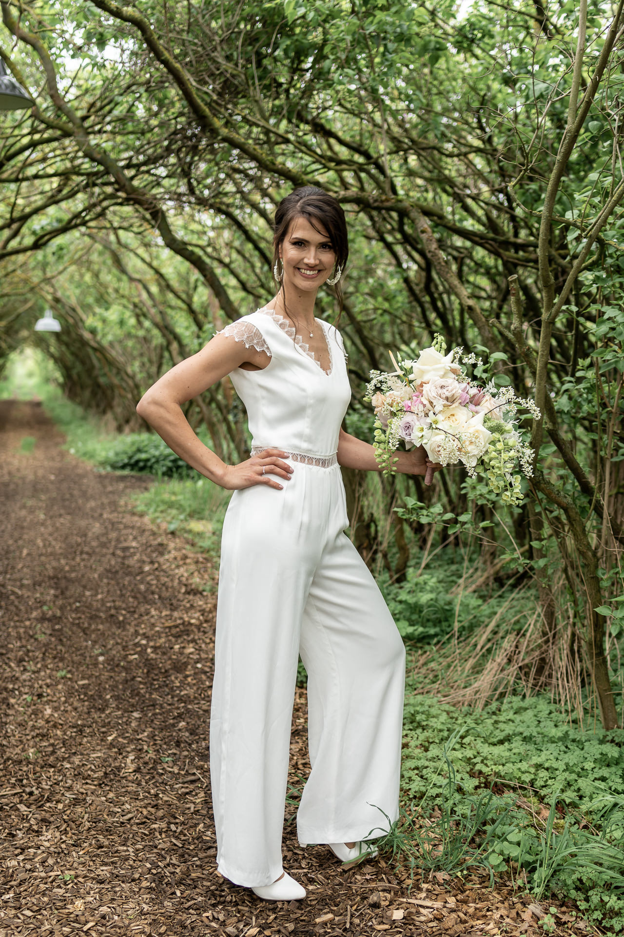 Fotos vom getragenen Braut-Jumpsuit: Sophia Molek & FleuraMetz